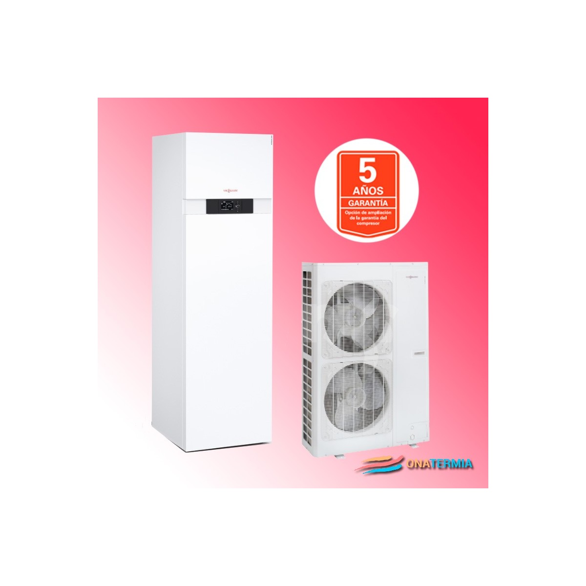 Bomba de calor compuesta por la unidad interior 111.A14 + unidad exterior AWBT-M-AC con interacumulador integrado de 220 litros. Posibilidad de refrigeración con función "active cooling". Refrigerante R410. Eficiencia energética de clase A+++. Potencia nominal calefacción 13,5 kW. Potencia nominal Refrigeración 9 kW. Alimentación 400V. Fácil instalación y mantenimiento. Con la interfaz de Internet Vitoconnect (opcional), pueden conectarse a internet através de la App ViCare gratuita.