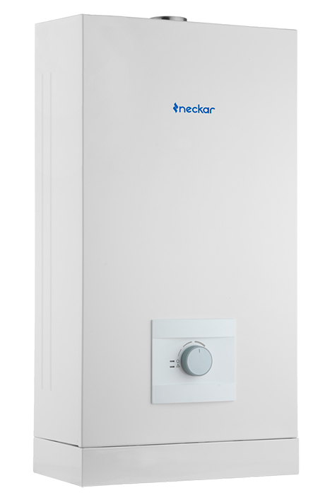 Calentador de agua a gas Neckar con cámara estanca. Bajas emisiones NOx. Encendido electrónico. Dispone de regulación de potencia entre el 50% y el 100%, facilitando el control de la temperatura. Con ello, al seleccionar la temperatura deseada, el calentador gestiona la cantidad de gas necesaria para un máximo confort de agua. Incluye kit de evacuación. Caudal de agua : 10 l/min