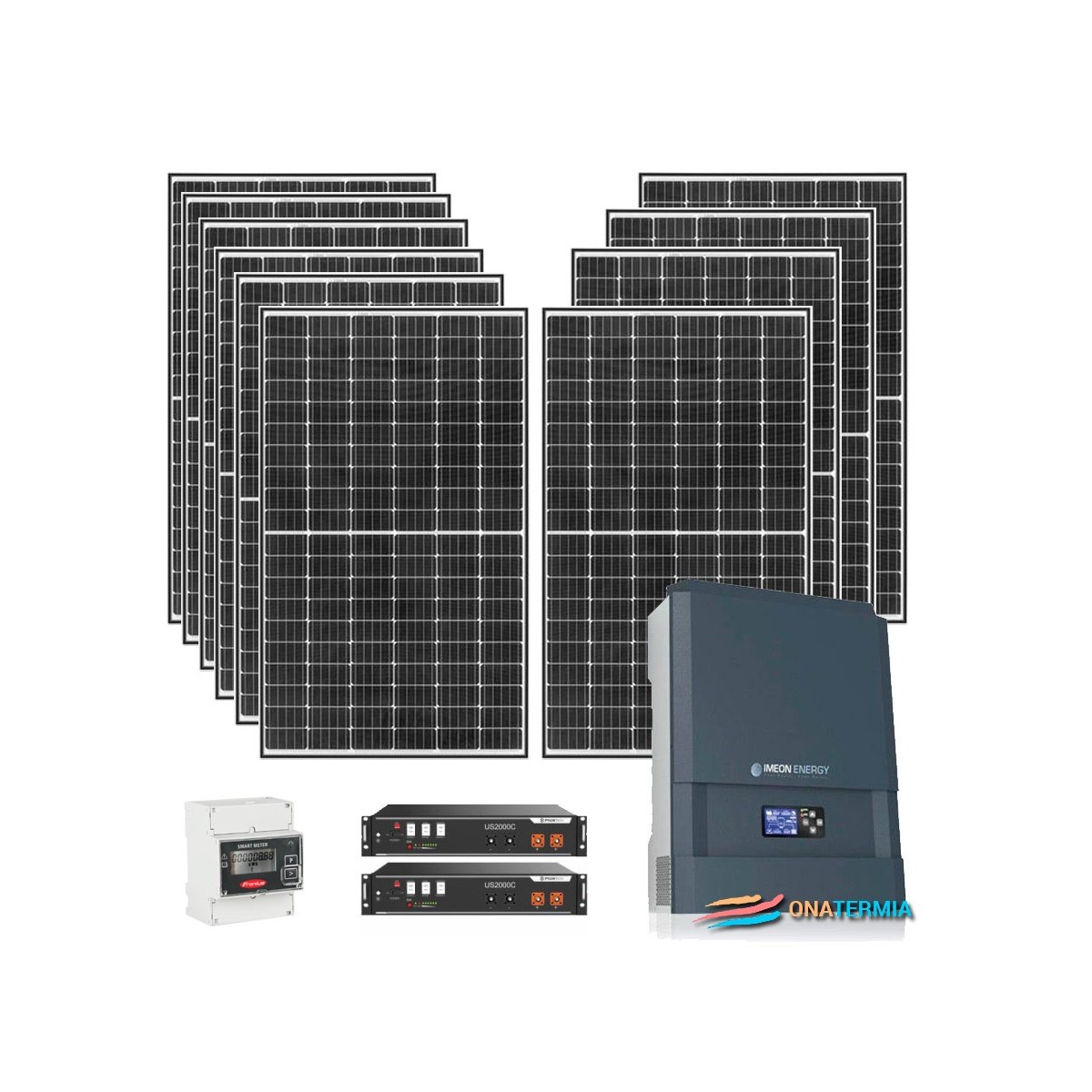 Instalación solar fotovoltaica con acumulación por baterías para autoconsumo residencial con 10 módulos fotovoltaicos 315 Wp, 1 inversor híbrido 3kW Imeon - 3.6, 1 medidor de energía Smart meter Monofásico 3.6 y 2 baterías de Litio 2,4 kW.